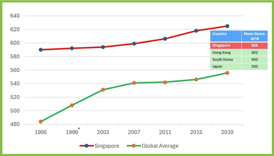 The performance of Singaporean students in trends in international Mathematics and Science Studies(Timss) of 1995, 1999, 2003, 2007, 2011, 2015 and 2019 at both Grade 4 and Grade 8 were outstanding and captured the attention od many educators and politicians world-wide